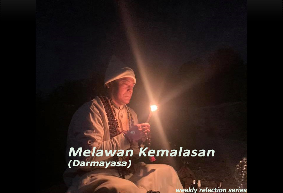 Biasanya, kebanyakan dari kita lebih sering memusatkan perhatian pada "khayalan-khayalan" akan kemajuankemajuan dan kehebatan diri pribadi. Tetapi bersamaan dengan itu kita malah malas untuk melakukan praktekpraktek spiritual. Malas melakukan praktek meditasi, tetapi sangat rajin berbicara tentang meditasi.